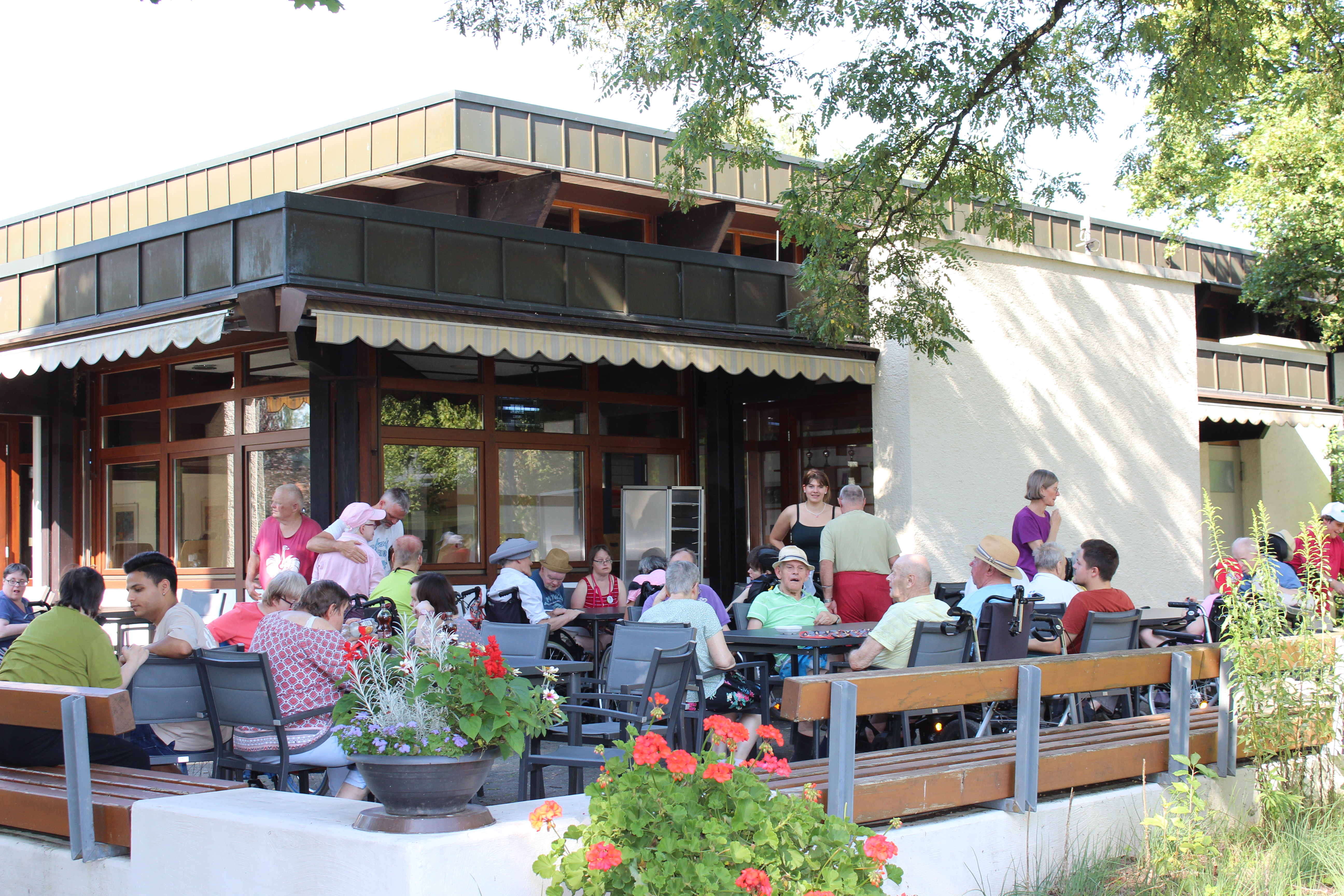Ein sommerlicher Abend für die Bewohnerinnen und Bewohner in launiger Gesellschaft auf unserem parkähnlichen Gelände